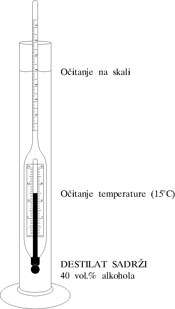 određuje količina alkohola u destilatima (rakijama, vinjacima,…) imaju